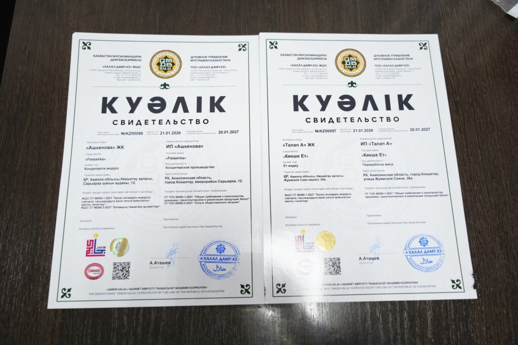 Қазақстан мұсылмандары діни басқармасының қарамағындағы «Халал Даму» ЖШС тарапынан Ақмола облысында орналасқан бірқатар кәсіпорындарға халал талаптарына сәйкестігін растайтын сертификаттар табысталды.