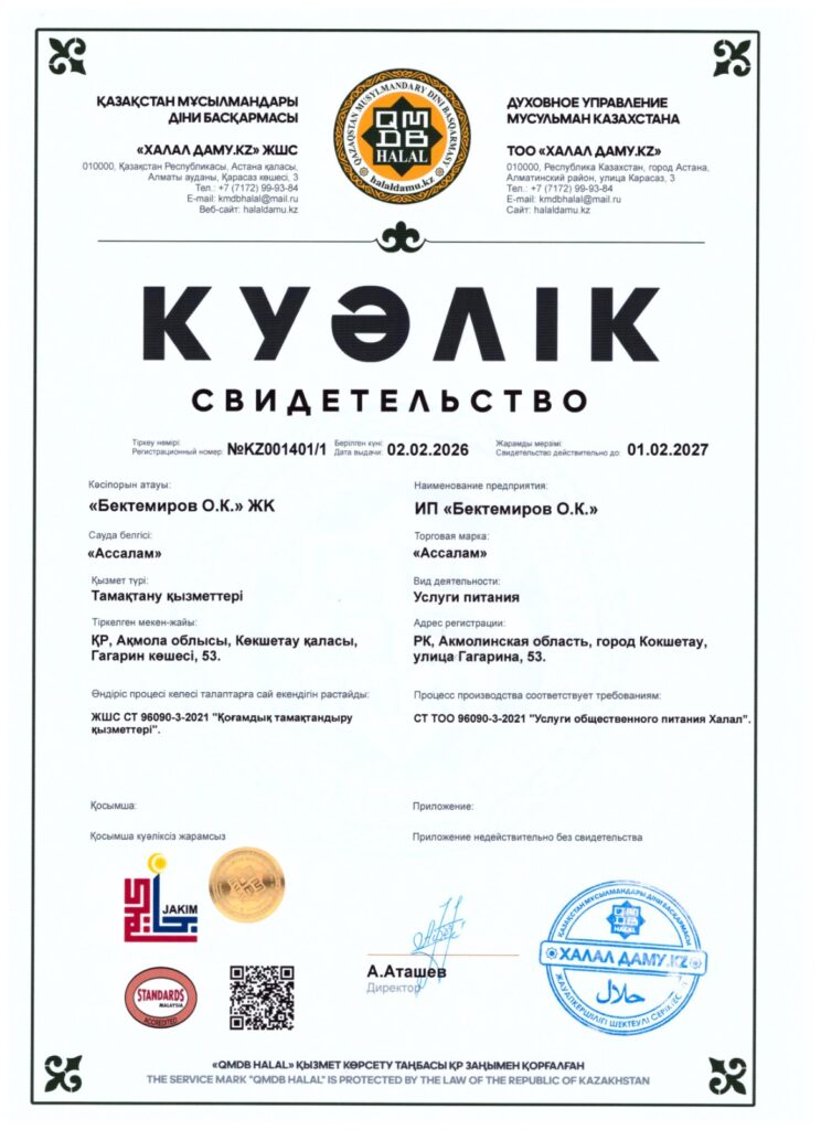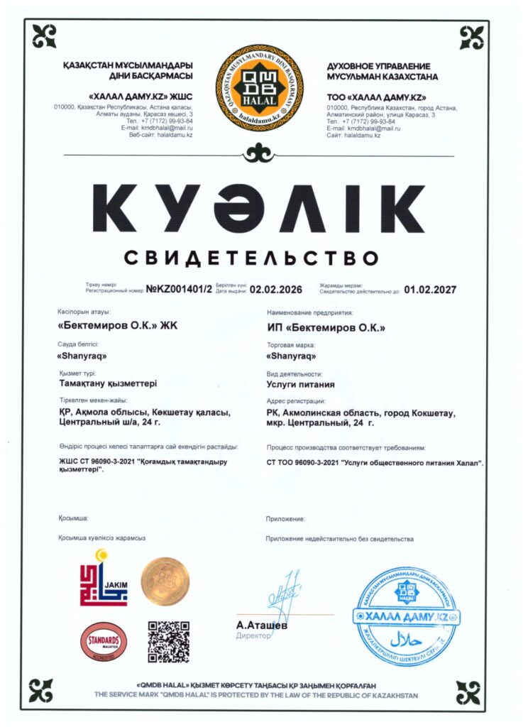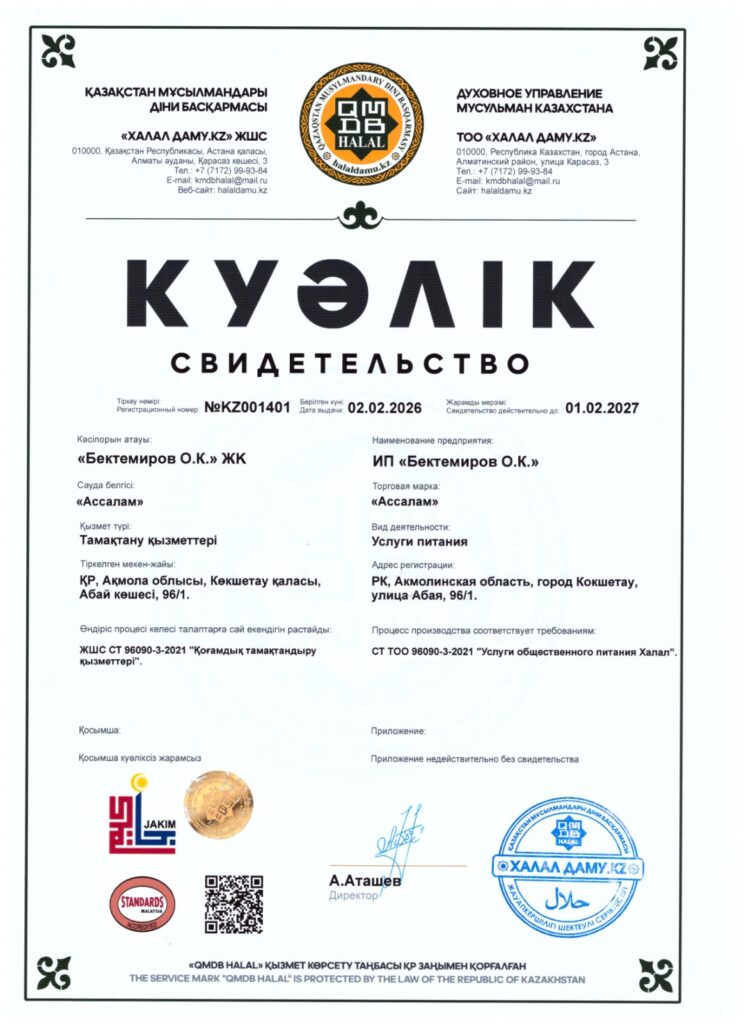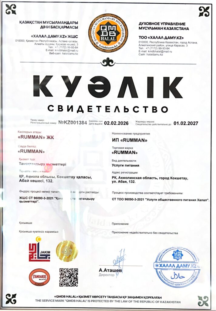 Көкшетау қаласында қоғамдық тамақтану саласында адал стандарттарды ілгерілету мақсатында бірқатар мекемелерге QMDB HALAL сертификаттары табысталды.