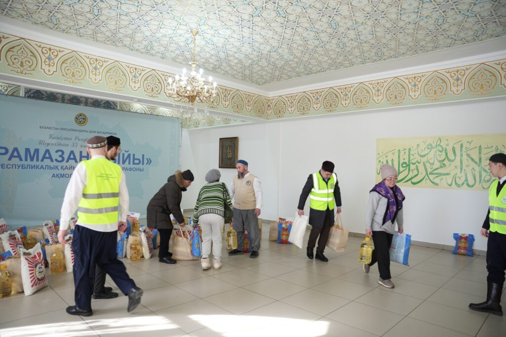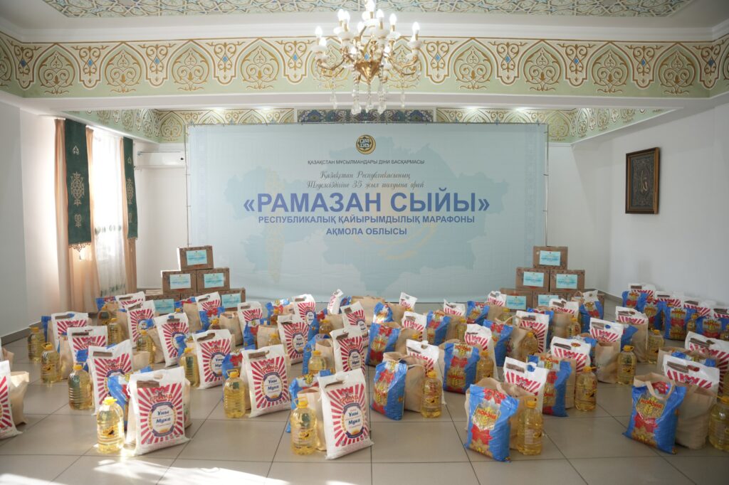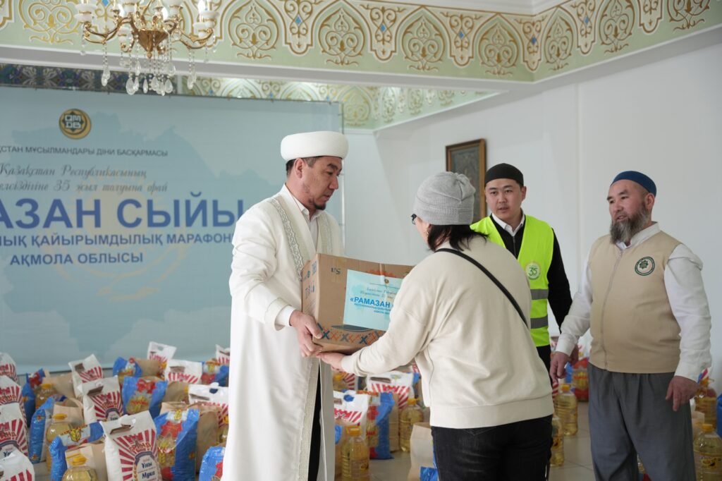 Қазақстан Республикасының Тәуелсіздігіне 35 жыл толуына орай Қазақстан мұсылмандары діни басқармасының Төрағасы, Бас мүфти Наурызбай қажы Тағанұлының бастамасымен ұйымдастырылған «Рамазан сыйы» республикалық қайырымдылық марафоны аясында Ақмола облысы Науан хазірет мешітінде мұқтаж және мүмкіндігі шектеулі отбасыларға азық-түлік себеттері таратылды.